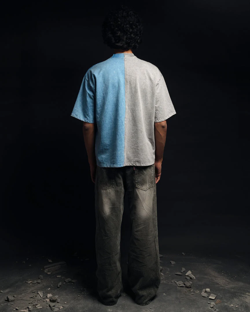 Half n Half T Shirt (Grey-Blue)