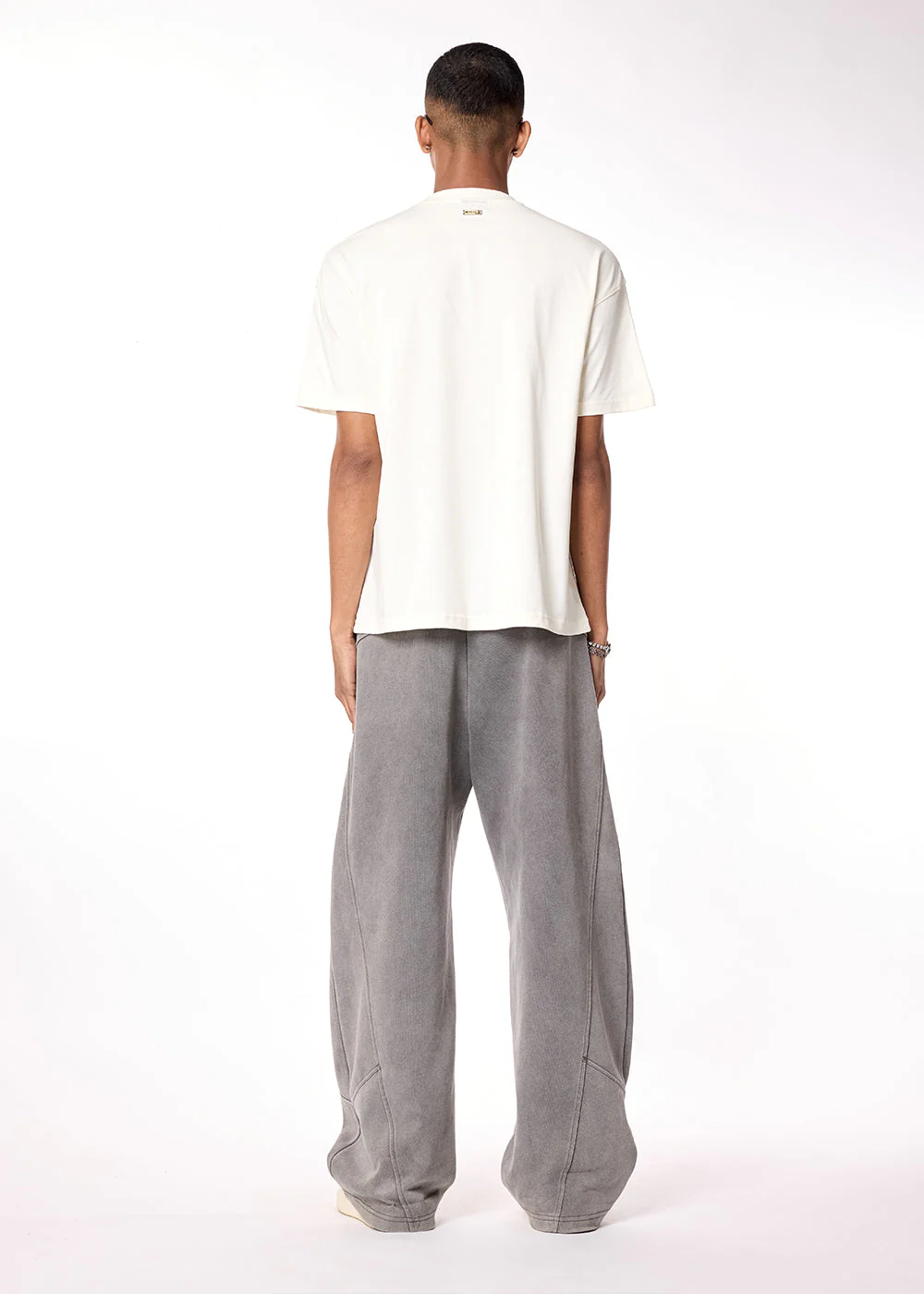 This off-white T-shirt features a round neckline and an oversized fit, crafted from 100% cotton for all-day comfort. It is detailed with an Evemen branded DTG print on the front and finished with a signature Evemen metal bar on the back.